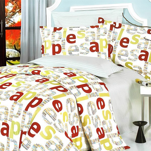 Home > Blancho Bedding - [Apple Letter] 100% Cotton 4PC Duvet Cover Set (King Size)(Comforter not included)