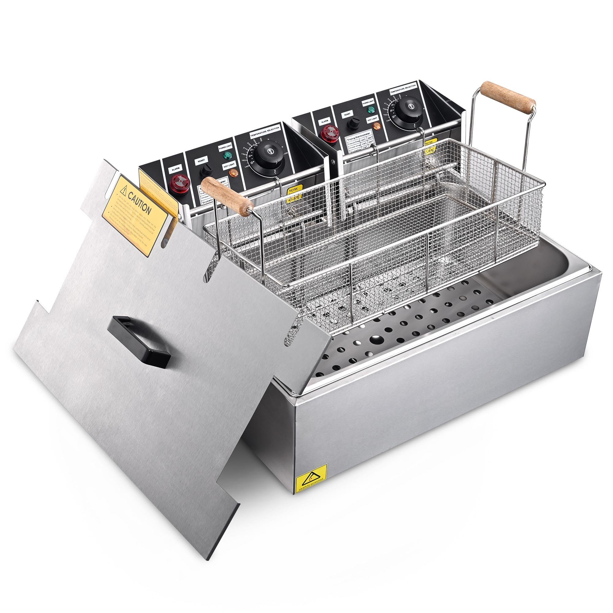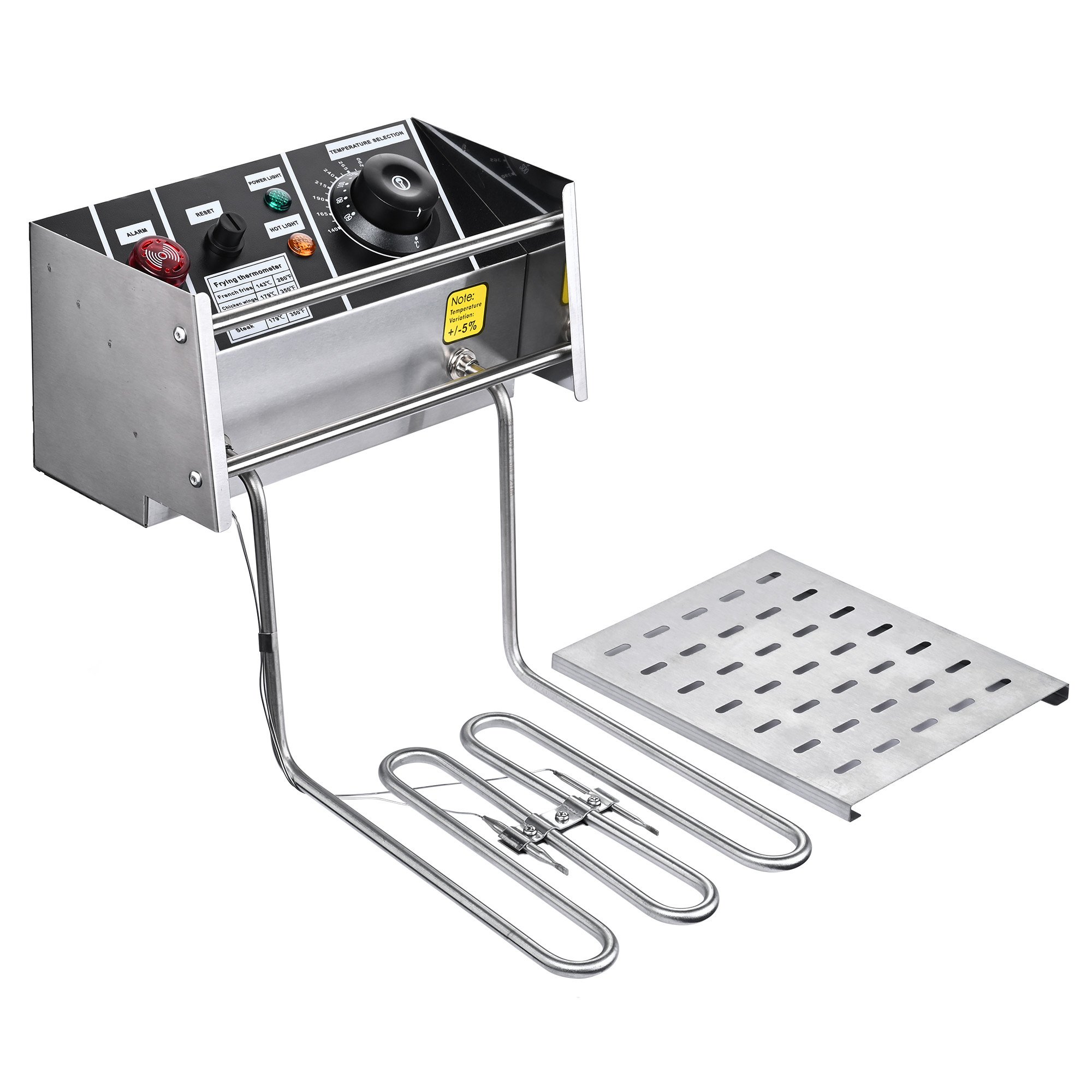 -Quick Heating - 110V 5000W Commercial Deep Fryer; upgraded longer heating tube for quick heating up; take less than 15 minutes to fry 6Lbs chips; Perfect for commercial use; like restaurant; snack stand; supermarket; concession; outside BBQ kitchen to make fried fish; French fries; onion rings; fried chicken; funnel cake and any other deep-fried food