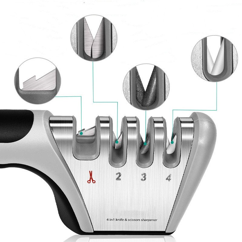 The 4N1 Knife Sharpener has 4 uniquely designed slots each with its own purpose.