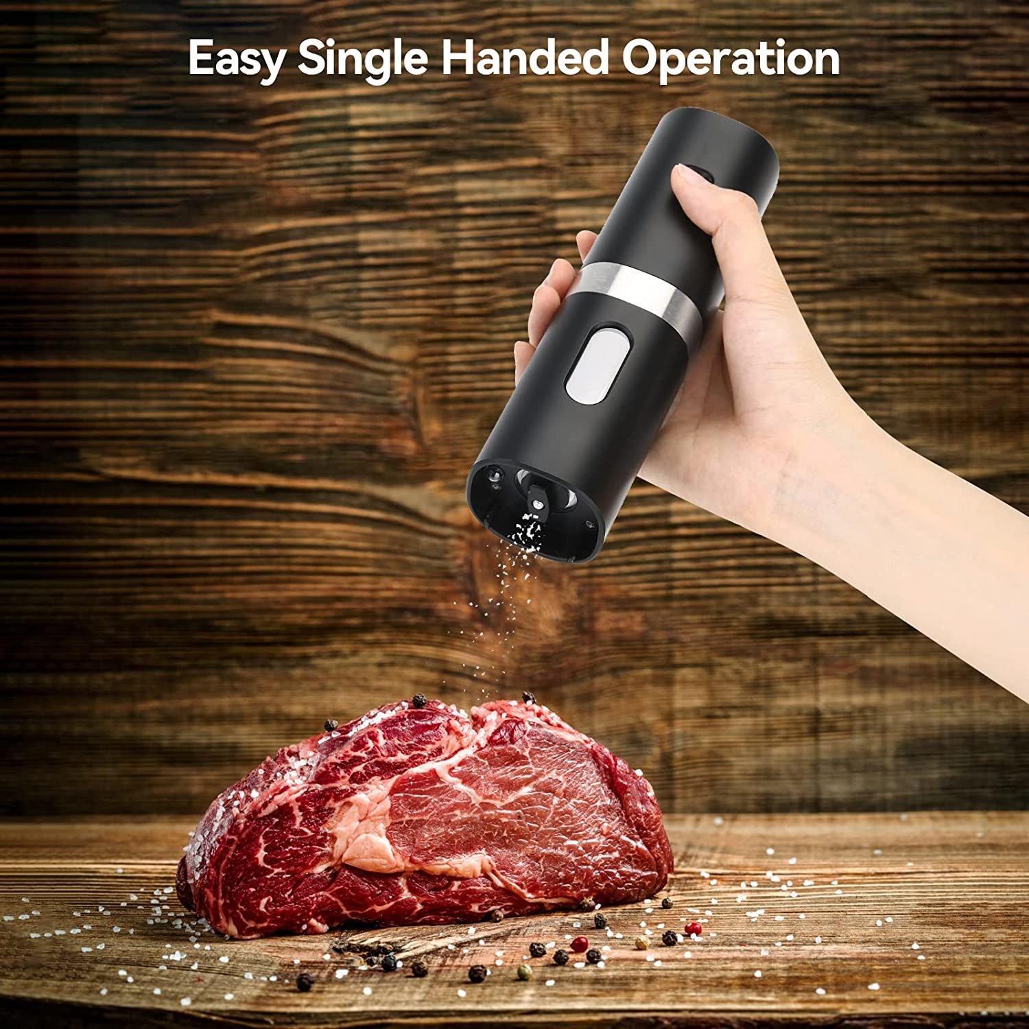 [USB Charging and Battery Dual Use - Salt and Pepper Grinder Set]- This electric salt and pepper grinder set has a built-in rechargeable 1200mAh (4*300mAh) battery; just put the grinder on the charging base to charge it.
