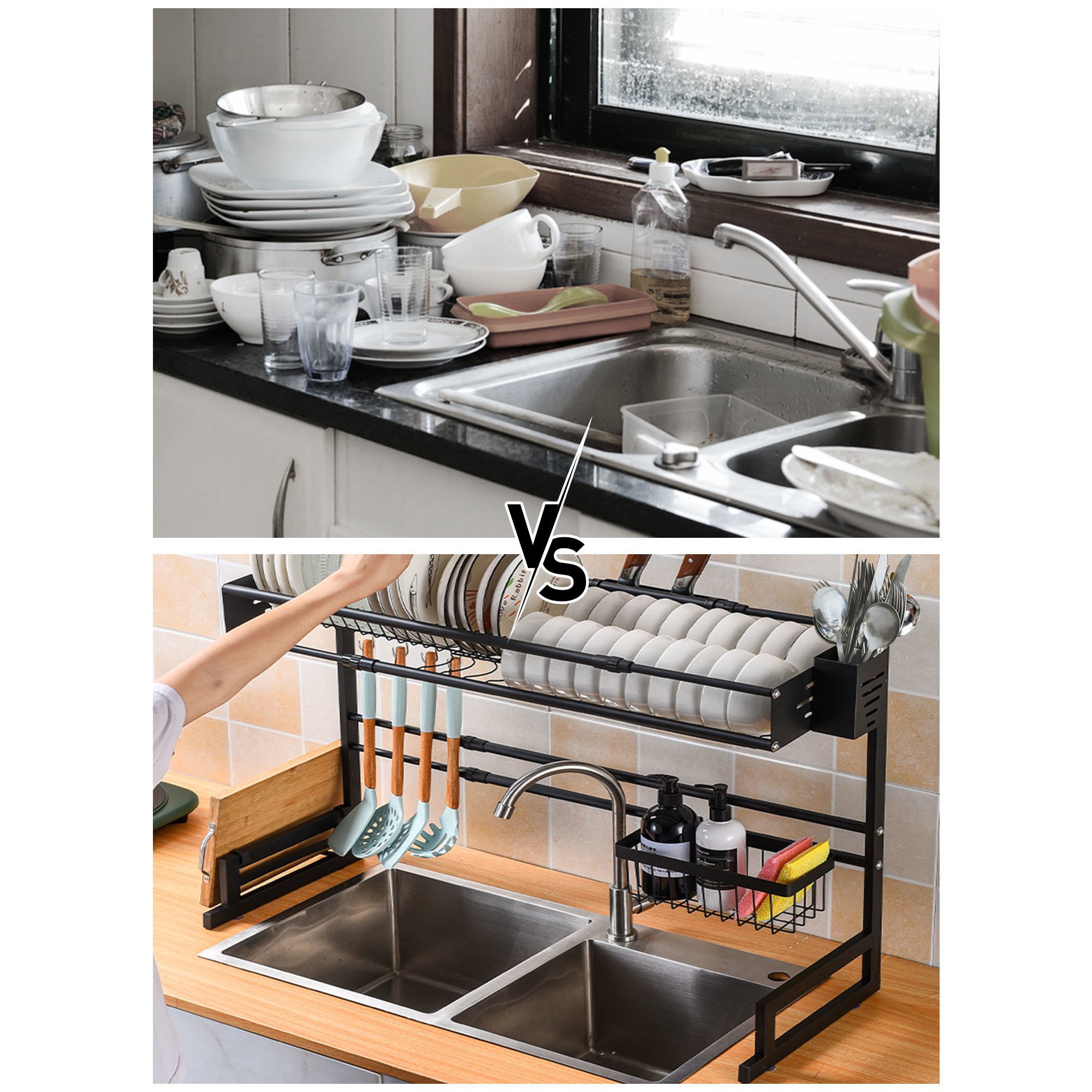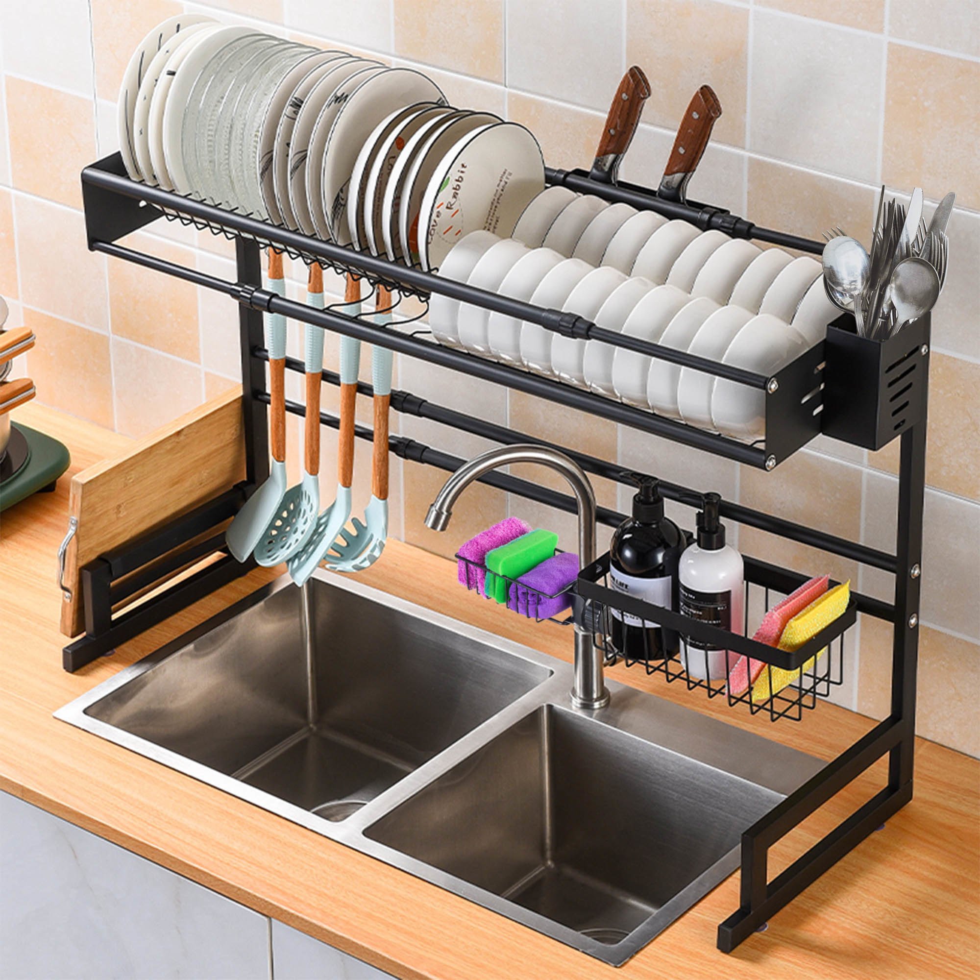 - Utilize Space -   Aquaterior Over Sink Dish Drying Rack features a simple yet practical design   that fits with any style kitchen and make full use of space by setting over   the sink to keeps all kitchen utensils tidy and handy