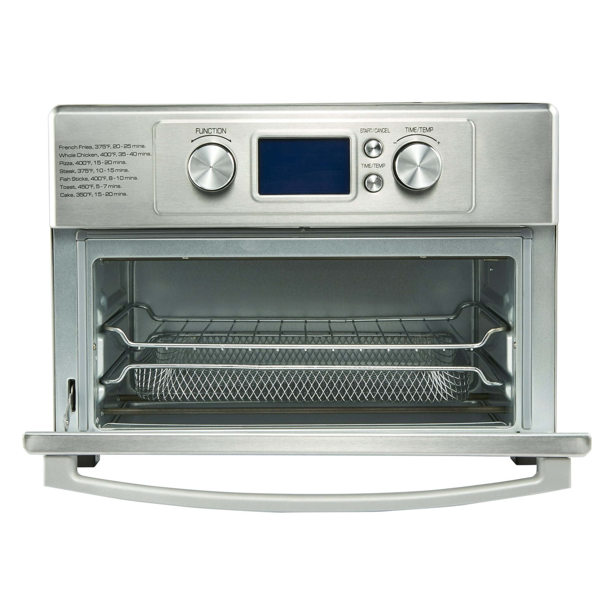 From fried favorites like fries and onion rings to quiche, pizza, and more, make all of your favorite meals for the family with this all-in-one toaster oven with a built-in air fryer. This kitchen workhorse not only bakes, warms, roasts and toasts, but it also lets you air fry inside the oven. Air frying uses powerful technology with rapid, hot air circulation to prepare delicious fried foods without the oil, so you can enjoy healthier recipes without the guilt or mess. Enjoy the crunch without worrying about the calories. Equipped with user-friendly controls with a built-in timer for up to 60 minutes, this multifunctional air fryer toaster features sleek, stainless steel construction that fits seamlessly onto any countertop. Get a full-size toaster oven and frying performance right on your countertop. Preprogrammed cook settings and automatic shut-off make it easy to use for the entire family. New. Model: 201797