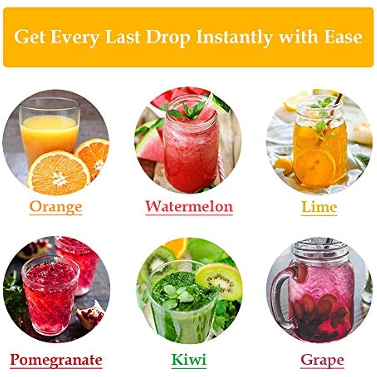 1.GET EVERY LAST DROP FROM YOUR FRUIT: lemon squeezer juicer is proven to get 30% more juice output than radiational juicers. The one-piece press head makes juice extraction easier to use, not easy to break, and the squeezing tooth pattern is more efficient. The multi-directional juice hole design at the bottom with a 2.76-inch diameter round bowl ensures to hold larger lemons and the juice is completely squeezed out.