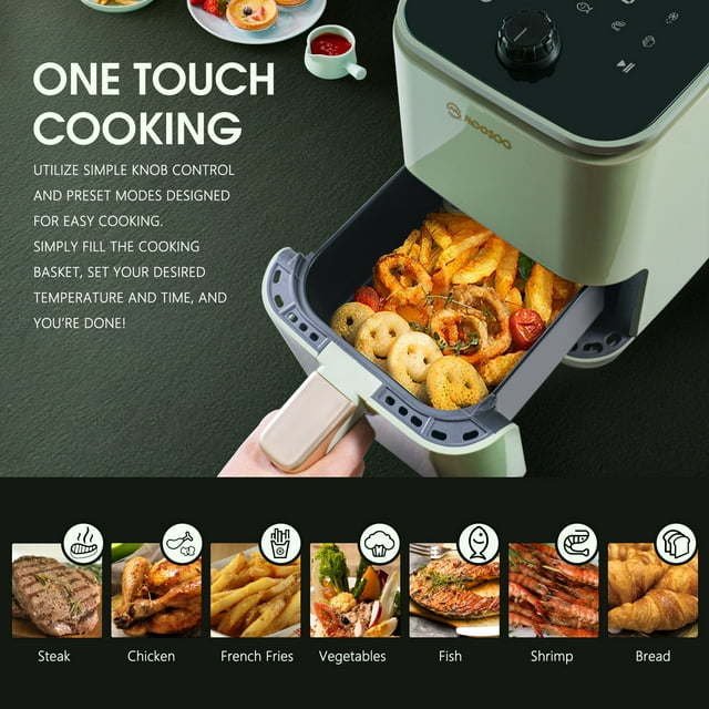 • Cook Faster: With 1200w powerful Fan, mini air fryer can save the cooking time by 30%.